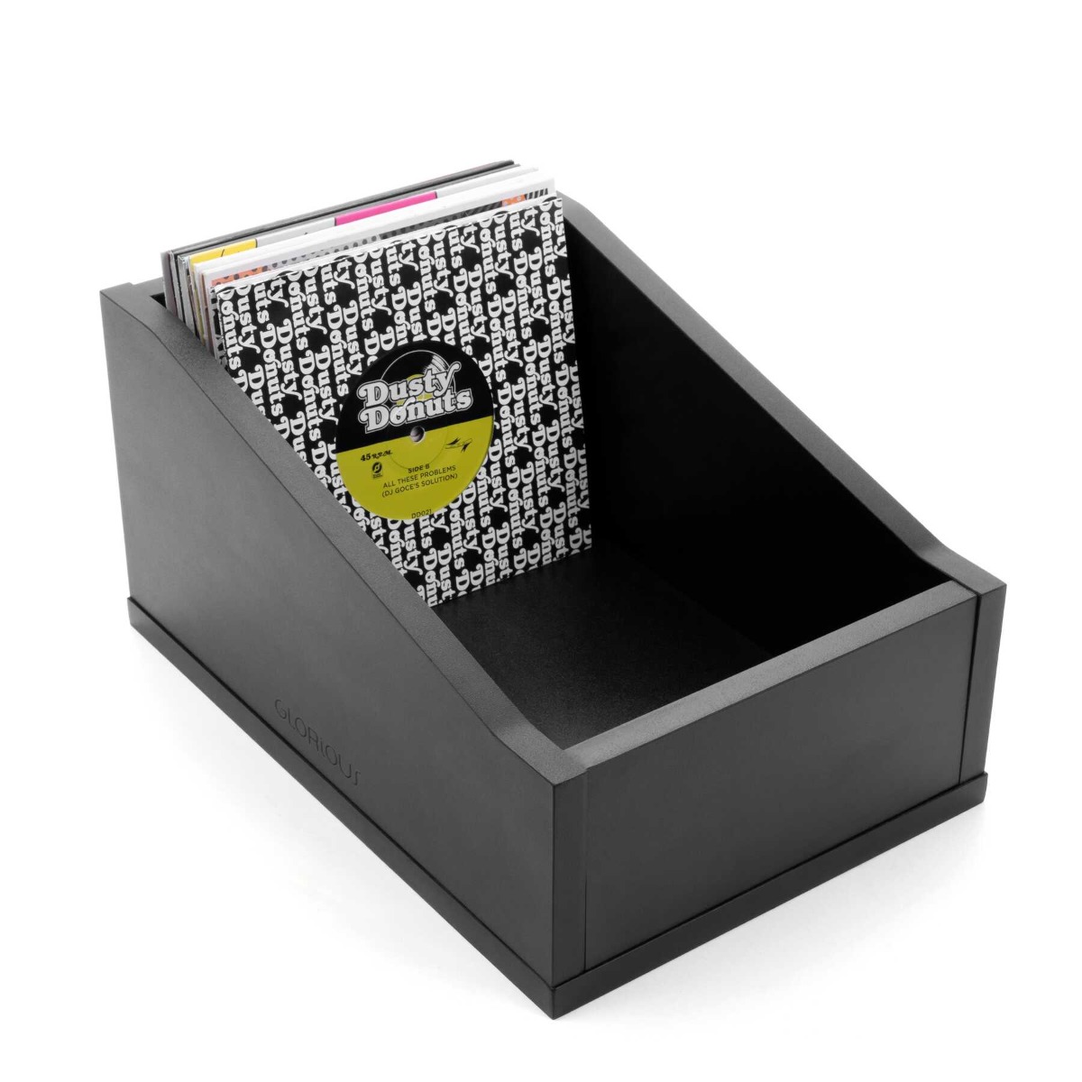 Compact Storage for 7'' Vinyl The Glorious 7'' Record Box Advanced 110 is designed specifically for 7'' records and holds approximately 110 singles. Slanted sides allow for effortless flipping through your collection, making it ideal for DJs, collectors and anyone who needs fast access to their 45s. Solid Construction with Practical Features Made from sturdy MDF with a scratch-resistant finish, the box offers reliable protection and stability. Smooth edges ensure safe and comfortable crate digging, while the open design provides a clear overview and easy access to all records. Modular and Versatile Fully compatible with the Glorious Modular series, the Record Box can be flexibly combined with other units. A stable base ensures secure storage, whether standalone or stacked. Available in black or white.